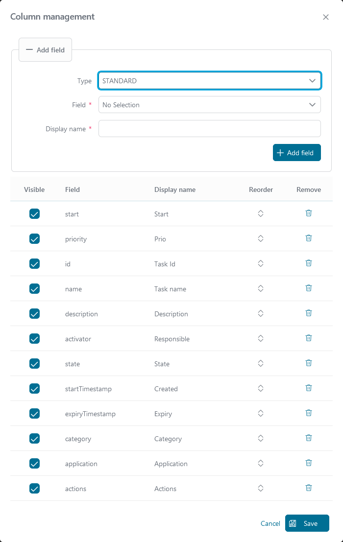 This widget displays the selected process start and all related cases and tasks combined in one single widget. This widget configuration will help you find tasks specifically to a particular process: