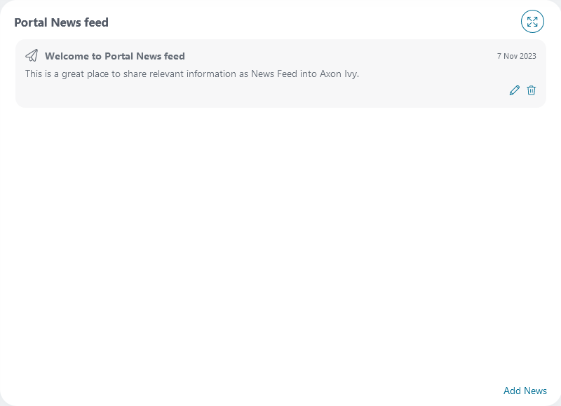 News feed widget: This widget shares relevant information as a News Feed into Axon Ivy.