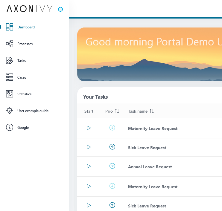Ivy process: triggers an Ivy process when clicked. Can be set as the default homepage in a user’s profile.