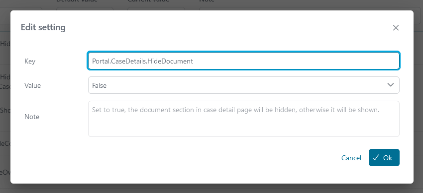 Set to true, the document section in case detail page will be hidden, otherwise it will be shown. |