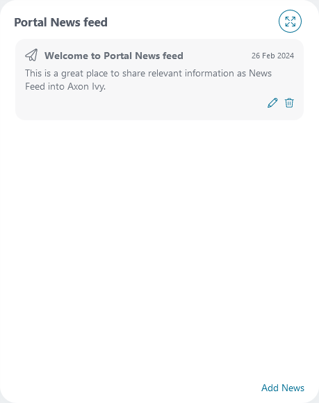 News feed widget: This widget shares relevant information as a News Feed into Axon Ivy.