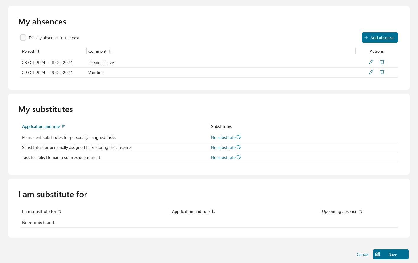 New UI and user can choose substitute as permanent or temporary for personal task.