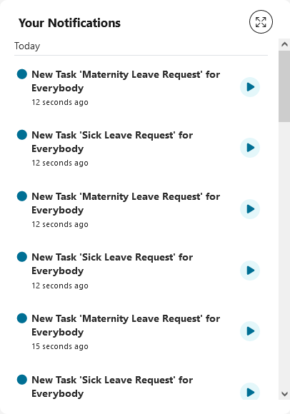 You can define a Notifications widget to display all Notifications based on your notification settings.