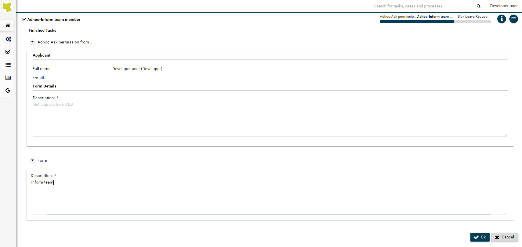 When start your original task, you will see summary about the Adhoc process for your task. You can also view it again by clicking menu icon then select Adhoc history.