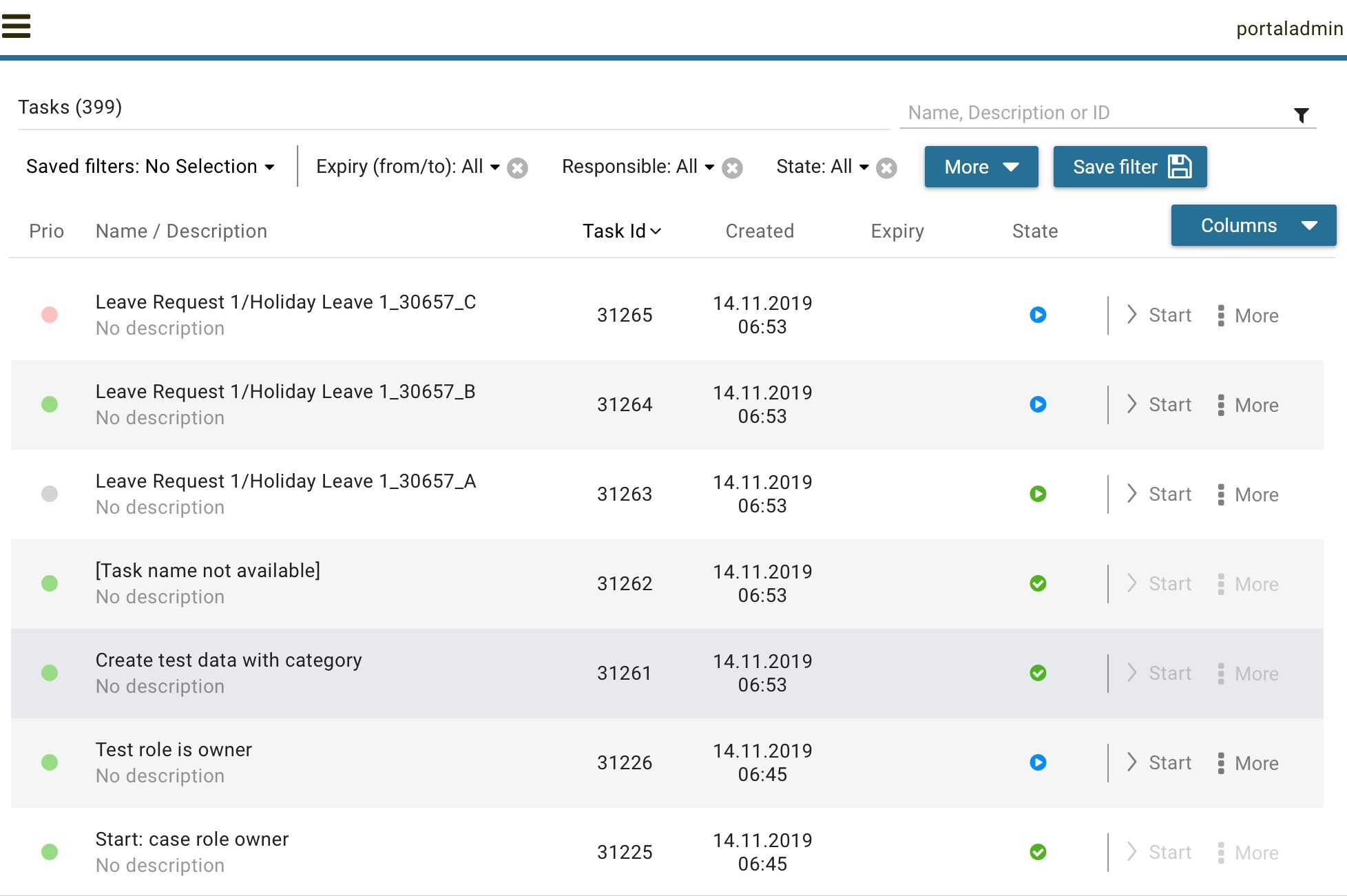 import ch.ivy.addon.portalkit.datamodel.TaskLazyDataModel; import ch.ivy.addon.portal.generic.view.TaskView; TaskLazyDataModel dataModel = new TaskLazyDataModel(); dataModel.setAdminQuery(true); dataModel.setSortField(ch.ivy.addon.portalkit.enums.TaskSortField.PRIORITY.toString(), true); category.setValue("My Task List"); out.taskView = TaskView.create().dataModel(dataModel).pageTitle("My Task List").hideTaskFilter(true) .showHeaderToolbar(false).createNewTaskView();