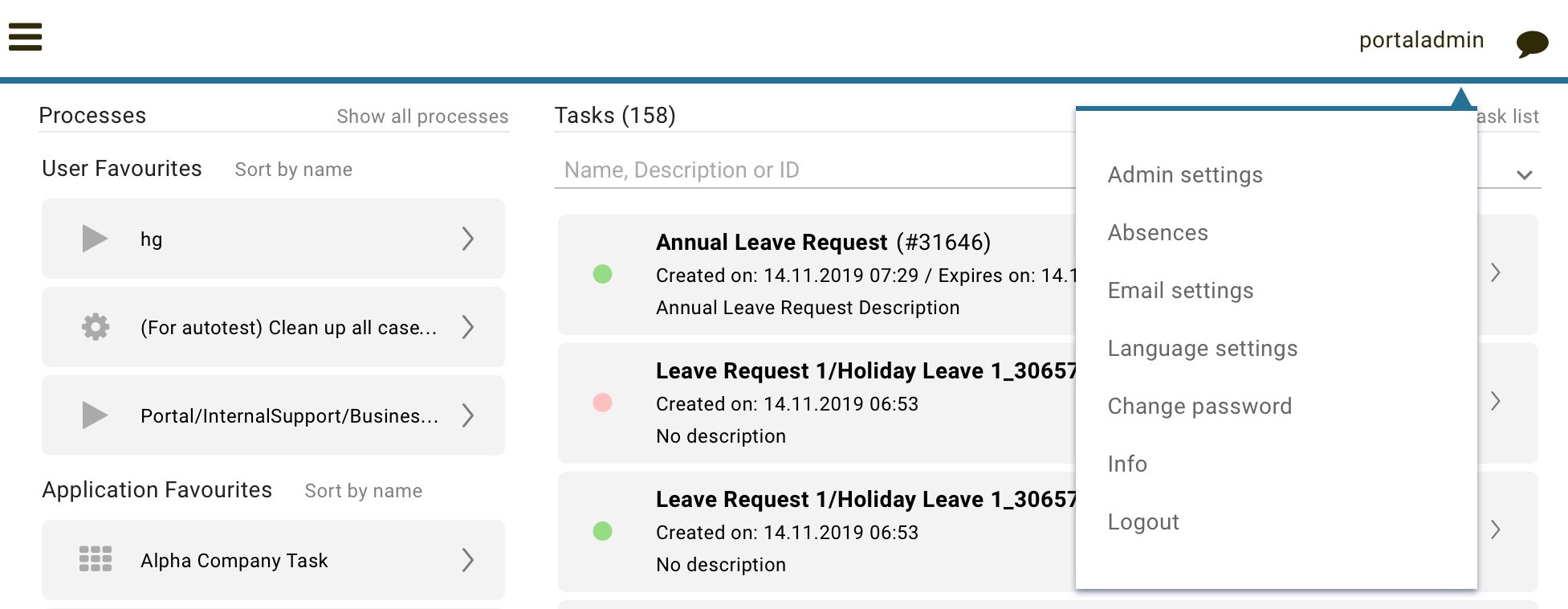 User cannot see “Processes” on the left menu and link “Show all processes” (on Dashboard) if he does not have permission PortalPermission.ACCESS_FULL_PROCESS_LIST.