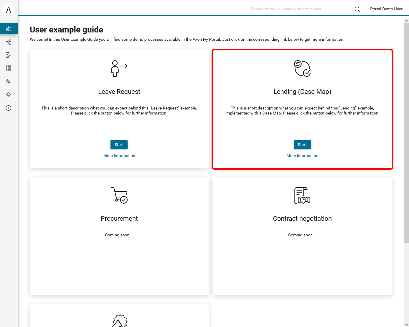When you start engine in demo mode, you will see the project portal-user-examples. In this project, we provide some simple examples and you can play around with them to have the feeling how ivy and Portal work.
